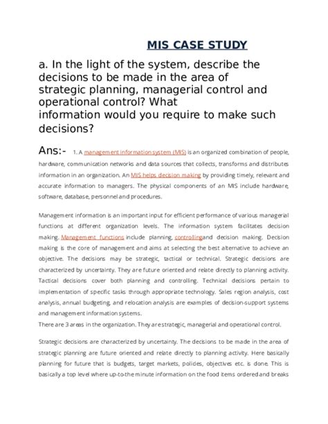 Read MIS CASE STUDIES QUESTIONS AND ANSWERS PDF